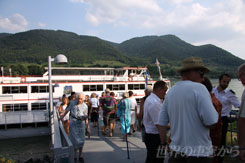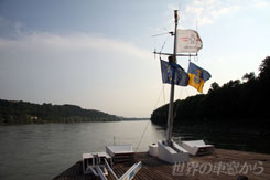 シュピッツからは対岸のメルクの街まで、世界遺産のワッハウ渓谷を遊覧船で渡る。日本でも人気の高い、オーストリア観光の目玉の一つ。今回「世界の車窓から」としては、鉄道ではなく例外的にこの船の旅を4日間に渡って紹介する。 ドナウ川沿いには、古城や修道院など中世から残る建物が多く存在しているが、実はその歴史はもっとはるかに深いそうだ。ヴィレンドルフという街には有名な「ヴィレンドルフのヴィーナス」と呼ばれる女性を象った像が発見されており、はるか昔に女系社会が存在していたと言われている。像が作られたのはおよそ2万年以上も昔の話というのだから、驚きだ。そんな太古の昔から、多分この川は変わらず流れているんだろう、と考えるとちょっと神妙な気持ちになってくる………と、言いたいところだが、それより何より、真夏の甲板の上は暑い。暑すぎる。朝早くからウィーンを出発して、ずっと撮影し続けていたので、さすがに疲労と暑さで頭がくらくらしてくる。神妙な気持ちに浸るよりは、川の水に思い切り全身浸りたい。降りる頃には、もう立っていられなくて、ぐったりしてしまった。でも、確かにワッハウ渓谷は相当綺麗な場所であることは間違いない。次は是非、プライベートでゆっくりと来てみたいものです。 メルクからは、再びローカル列車に乗って、さらに西のサンクト・ヴァレンティンへ。そこからは南に方向を変えて、中部の山々を迂回するようにしてザルツブルクの町を目指すわけだ。メルクからサンクト・ヴァレンティンの間には特に何かがあるわけではなく、牧歌的な風景がただ続く。こういう、異国だけど、観光地でもなんでもない場所というのは、それはそれで親近感が沸く。多分、普通に旅行に来たら、わざわざ時間とお金をかけてこういうところは行かないだろうな、と思う。こういう誰も行かないところに行けるというのは、この仕事の良いところです。