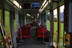 ザルツブルクの街を出発したあとはエーベーベー・オイロシティという長距離特急列車に乗って、オーストリアの西端の街、ブレゲンツを目指す。この路線は、一旦オーストリアの国境を越えて、ドイツ領内を走った後で再びオーストリア領内に戻る。特に駅に停車はしないので、ドイツの風景は車窓からのみ楽しむことが出来る。ドイツと言うと、厳かなイメージがあるが、そう思って眺めると、家や教会の形もなんとなくオーストリアに比べて重厚な感じがする。 再びオーストリア領内に入ると、そこは有名なチロル州。アルプスの山々が見えてくると程なくして、列車はインスブルックに到着だ。チロル州の州都であるこの町は、過去に2度の冬季オリンピックが開かれたことでも知られている。ヘルツォーク・フリードリヒ通りを中心とする旧市街では、大道芸人たちやストリートミュージシャン達が観光客の目を楽しませてくれていた。 インスブルックはグラーツやウィーンと同じように、路面電車が街中を走っており、移動には便利な街だ。その路面電車の中に、一風変わった電車がある。「STB」と表示されている電車がそうで、これに乗ると、路面電車なのに街を飛び出してしまう。この列車はシュトゥーバイタール鉄道と呼ばれ、シュトゥーバイ渓谷を抜けて、インスブルックの南に位置するフルプメスを目指す、路面電車だけど郊外の山間を走るという列車なのだ。 さっそく、朝、このシュトゥーバイタール鉄道に乗り込んでみると、しばらくして車窓には谷のたいそう美しい景色が広がる。いやあ、綺麗だ!でも…残念なことに車内には驚くほど人がいない。車窓が綺麗でも、車内に人がいないと、編集が辛くなる。それは困ると言うことで、夕方にインスブルックに戻ってから、もう一度乗車することに。すると、今度は朝とは逆に超満員!逆にこうなるとカメラマンの身動きがとれなくて困る。ほとんどの人はハイキング客のようだが、どうして朝は誰もいなかったのに、夕方にこんなに混むのだろう?普通、朝出発して、夕方帰ってくるものじゃないだろうか?よくわからないけど、それでも誰もいないよりは人々の様子が撮れたので、まあ、いいかあ。