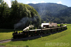 今回のオーストリアの旅はウィーンを出発して、まずは東部の方面をグラーツまで、いろいろ寄り道しながら巡る。その後、再びウィーンに戻り、ドナウ川流域、中部地方、オーストリアアルプスを抜けて、スイスとの国境付近まで行く予定。東部の目玉の一つが、蒸気機関車のシュネーベルク登山鉄道。ラックレール、アプト式鉄道としては国内最長の9.8kmで、1時間半かけて、プッフベルクという街から、シュネーベルク山の上まで上がる。 さて、朝8時。車庫の中に入ると、蒸気機関車がいた。さっそく、ブレーキに油をさす作業が行われるというので、ついていくと、機関士は機関車の脇にある階段を降りていった。この車庫の下には小さな部屋があり、そこで上を見上げると、レールの隙間に穴が開いており、機関車の下にもぐりこんで作業が出来るようになっているわけだ。機関車を下から見上げるというのは、なかなか出来ない経験だ。ちょっと、興奮する。上からは水滴に混じって黄色く輝く燃えた石炭のカスが落ちてくる。この機械感とオイルと煙の香り。時折スチームがボッシューと音を立てるのがたまらない。蒸気機関車って、どうしようもなく魅かれてしまう。機械感なのか、人の温もりなのか。とにかく良いですよね。蒸気機関車。 それにしても、このシュネーベルク登山鉄道、山を登る割りに車体が小さい。乗車すると、ものすごい音と蒸気を吐き出して、がったんごっとん揺れまくりながら、進む。これ、大丈夫なのか、本当に登れますか?と心配になる。そうこうするうちに、どうにか途中駅のバウムガルトナー駅に到着。いやあ、良かった。…などと、思ってたら、何やら、騒がしい。機関車の方へ行ってみると、運転手さんが燃えた石炭をかき出していた。どうやら、水が混入したせいで圧力が下がってしまったらしい。平たく言えばエンジンがいかれたとのこと。うーん。やっぱり、大丈夫じゃなかった。ロケにアクシデントはつきもの、とはいえ、先が思いやられる…。 ちなみに、この蒸気機関車は夏の間の日曜日と祝日しか運行していません。本編では紹介していませんが、普段は「サラマンダー」というディーゼル列車が運行しているので、それに乗ってシュネーベルク山に登ることも出来ます。