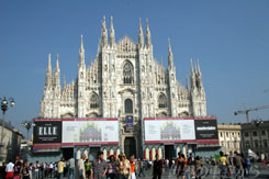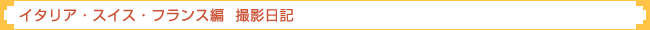 「撮影日誌1」 イタリアでまず驚いたのは踏切。遮断機が下りるのが早いったら。計ってみると、列車が通過する8分前から下りているところもあった。列車の走る姿を撮影する場合、近くに踏切があるのは好都合だ。というのはもちろん列車の接近を知らせてくれるからなのだが、外国ではぎりぎりまで遮断機が下りないところもあったりして慌てた経験はあるものの…ここは違う。違いすぎる。「さあ、来るぞ」とカメラを構えたはいいが、いつになっても来ない…。そんな時、つい「踏切の故障では?」などと疑ってしまうのがイタリアに対して失礼なところなのだが、でも疑問疑問疑問、となってくる。とは言え、見れば遮断機の前には人も自転車も自動車も待っているので、そんなものか、と思い直し。すると、そのうち列車が来るのだが、気が長いとも思えないイタリアのトラック運転手とかが、よく我慢できているものだと感心したりもする。 成田から降り立ったミラノは、まだ夏という感じで気温も30度近い。快晴。でも、色づいている木もあるあたりが興味深い。「気温は下がらないけど、一応そろそろ季節だし」というような心遣いを木によっては持ち合わせているのか。 さてミラノといえば、やっぱりドゥオーモということになるわけだが、ファサードの一部が補修・清掃のために組まれた足場に隠れて見えない。この作業、何年も前から続いているのだと思うが…まだやっていたのね。でも、そもそもドゥオーモの建設は500年くらいかかっているので、最初に作った部分は完成するまでに何十回か補修したんだろうし、いつも建物のどこかは補修・清掃中というものなのではないかとも思うわけだが、でもファサードがこれだと、なかなか撮影には辛いところ。ミラノでは他にナヴィリオやファッション街やカツレツを撮影。「短い番組なのにそんなに撮ってどうする!」という声も方々から聞こえてくるわけだが、まあ、自分が見たいという欲求の産物というのが正直なところか。 まずは、ミラノからイタリア国鉄に乗ってコモへ。続いて、レッコを経由してティラノまで。こうしてまた旅の始まり始まり。