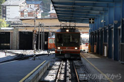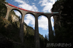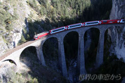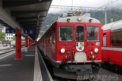 「撮影日誌6」 スイスと言えば峠。国全体が箱根の関所みたいな感じがする。昔は峠の入り口に門があったりして「ごらぁ通行料を払って行けや」とかやっていたのか。 今回はベルニナ峠、アルブラ峠、フルカ峠、オーバーアルプ峠などというところを、ずいぶんと行ったり来たりした。だけど、スイスの峠と言っても、どうやら重要なのは南北の交通。やっぱり北のドイツと南のローマとを結ぶ交通が主要だったのだろうか。今でも南北の交通はパイプが太いようだ。ゴッタルト・トンネルあり、シンプロン・トンネルあり。ところが東西の交通となると同じ国内だというのに、そうでもない。立派なトンネルでなくて、峠道をうねうねと登らなくてはならなかったりする。どうしてこれが気になるかというと「氷河急行を追いかけて走る雄姿を撮りたい」という、こちらの事情があるからに他ならない。相手は「世界一遅いエキスプレス」なのだから、普通だったらひとつの列車につきまとって、あっちからもこっちからも撮り放題できそうなものだが、道路事情がよくないのでそうはいかないのだ。ライヒナウからアンデルマットの間は「山道」と呼べる区間が多く、すれ違いができないところもある。だから、列車も遅いが車も遅いのでやっぱり思うようには撮れないのであった。自分の立てたスケジュールの甘さを思い知る瞬間でもある。 さて、氷河急行だがサン・モリッツからクールの間は「さすが」という感じで、見どころ充実。アルブラ川沿いの下りや、ランドヴァッサー橋などの高架橋、ライン川沿いの古城群と、変化に富んでいる。続くクール〜ディセンティス間も、昼食があり、ライン川の峡谷あり、オーバーアルプ峠の上り下りあり、とここでまた第二の盛り上がり。クールの町やディセンティスの修道院もはるばる来た甲斐を感じさせる。ディセンティスからは鉄道会社が変るので、機関車の取り替えも必見。ここからは登山鉄道っぽく歯車付レールの区間が登場するのだ。速度を落として「カタン」とギアが噛み合う感触にぞくぞくする。この次のアンデルマットからブリークの間が「車窓」的にはちょっと地味なのだが、乗客も少し気を休めたいタイミングなので丁度よいのかも。ローヌ川の谷に点在する村や屋根付きの橋は、これまでの区間とは違う楽しさがあるし。 小さな国だけど、よく見ていると地域によってかなり変化があることに気がつく。これも氷河急行の魅力のひとつか。