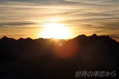 「撮影日誌8」 「飛行機雲公害」と谷茂岡カメラマンが時々つぶやくように、アルプスでは飛行機雲がけっこううるさい。まあヨーロッパの真ん中みたいなところにあるから、この辺りを通る飛行機は多いのだろうけど、せっかく大自然の悠久な気分を満喫したいと思って来ているのに、山の背後の青空に、人工的・現代的なものをものすごく象徴する白い筋がいくつも現れるのはちょっと悲しい。 さて、ブリークから西に向かい、次の目的地はシャモニー。フランス。最初の冬季五輪が行われたところ。でも、フランスに入るずっと前に、既にフランス語圏になる。何の前触れもなく、降りてみるとそこにはフランス語。人々はフランス語を話している。いや、そりゃ「ここからフランス語」なんて書いてあるはずがないけど、でもやっぱり驚く。 そう、城もたくさん見たっけ。クールに向うライン川沿いに幾つも城があり、ここローヌ川沿いの町でも城を仰ぎ見て、イタリアに近いティチーノ地方でも城見物。スイスって何か山国だし、よその国々とは一線を画していたような気がしていたけれど、ドイツとフランスとイタリアとオーストリアなどという強国に囲まれて、そんなわけもないと今さらながら気がついた。 ヨーロッパでもっとも高い山(厳密にはコーカサス山脈の方が高いけど、あまり「ヨーロッパ」ではないということで…)モンブランの高さはいったい何メートルなのか。これが実は難解。4808mということなのだが、でもフランスの地図には4810mと記されているものもある。2002年に測量したところ、そういう結果が出たらしい。ところが2003年に再度調べたところ4808.45mで、山頂の位置も移動していたというからややこしい。そんなことから2年ごとに測ることになったのだそうで、2005年の調査では4808.75mとまた少々増えているし、2007年には、再度4810mに到達。要するに山頂が雪と氷だから変動するみたいなんですけど…それってありなのか?本物の「山の頂上」は40メートル離れたところにあって4792mのようです。 ああ、よくわからない。 どうして栗のケーキがモンブランなのか、とか万年筆の会社がモンブランなのかは、今は考るのをやめておこう。