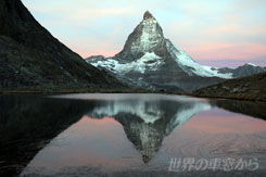 「撮影日誌7」 マッターホルン。地元の人は親しみを込めて「ホル」と呼ぶそうだ。「おやま」というようなニュアンスかな。「今日はおやまがよう見えとるのう」とか? この山はでかい。写真で見た限りだと、そこがもうひとつつかめないのだが、そこだけ縮尺が違うような存在感。他の山のように連なっているのではなく、孤高な感じで堂々とあの姿で立つ様を見ると、人気のほども納得がいく。世界の山で、人気ランキングなどをやれば上位3位までに入ることだろう。 マッターホルンを見るポイントは何カ所もあり、それぞれに魅力があるのだが、鉄道で旅をする番組としては必然的にゴルナーグラートを目指すことになる。この鉄道がまたすごい。スイス、すごい鉄道が多いけど。リギもピラトゥスもユングフラウもブリエンツ・ロートホルンもすごいけど、ゴルナーグラート鉄道は本当にすごい。車窓にマッターホルンをじっくりと見ながらって信じられない。あり得ない。頂上に近づくと右手に広がる山塊と氷河がまた見事で「ええもんを見せてもらいました」と鉄道さんに感謝しそうになる。よくもまあ、100年以上前に、こんなところに線路を敷けたものだ。 ところで、山や海に来ると何故か必ず日の出日の入りを撮ろうとするのが性分みたいで、今回もゴルナーグラート頂上のホテルに泊まって、明け暮れを撮影。日没後の焼けた空が刻一刻と変わっていくなかに立つマッターホルンにまずは酔いしれ。翌朝は、日の出1時間前集合。真っ暗な山道を下へと進む。目的地はマッターホルンが逆さに映る湖。電車が動いていれば近くの駅まで乗ることができるのだが、始発を待っていては間に合わない。空気は薄く、寒く、おまけに起き抜けだが歩くしかない。ディアヴォレッツァの時のように膝まで雪に埋まりながら登るという状況ではないのが幸いだ。 湖に映るマッターホルンを見るには晴天はもちろんのこと、無風も必要な条件。わずかな波でも、もう映らない。湖が凍ってしまうと、やっぱりダメ。この時は太陽が登るのと同時に風が出て危ぶまれたが何とか撮影成功。ピンク色に染まったマッターホルンは、なかなか艶っぽくてこれまたよろしい。 撮影後、近くの駅へと移動開始。ものすごく寒い。幸いなことに駅のトイレがあり、暖房が入っている。トイレと言っても前室の部分があってそこそこの広さ。スキー用具の乾燥用か。ここで始発を待つ。目的の映像が撮れた後は、みんな表情がいいよね。
