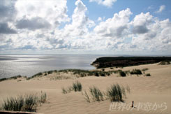 撮影日記10 「天気に恵まれる」 ヴィリニュスからシャウレイ経由でクライペダまで列車の旅。ヴィリニュスからシャウレイまでは、雨がぽつりぽつり。気温は10度ちょっとだろうか。ふえ〜、初夏だというのに寒い。ヨーロッパは雨が降ると途端に寒くなるが、例に漏れず。途中、撮影助手の佐藤君が車掌さんに間違われ、切符を渡された。ぷっ!佐藤君は顔がスラヴ系なもので…。シャウレイでは「十字架の丘」を取材。リトアニアは国民の80%ほどがカトリック。帝政ロシアの時代、圧政に蜂起した際、多くの人々が処刑され、シベリアへ流刑された。その鎮魂のため、自然発生的に十字架が丘にたくさん立てられるようになったと言う。大きな十字架に、無数の小さな十字架がかけられ、無言の迫力がある。ソ連時代には幾度も撤去されたというが、けして挫けることなく、十字架が持ち寄られた。リトアニアの人々は概して無口な印象だが、その奥には反骨精神を秘めているのだろう。「十字架の丘」を目にして、ふと思った。雨がしとしと。リトアニアの人々の涙のように感じられた。シャウレイから再び列車に乗り、クライペダまで。乗車している内に、ぐんぐん晴れてきた。ああ、素敵。海へ行くのだから、こうでなくっちゃ。きっと、普段の行いがいいのだろう(ナンチャッテ!)。この路線はゆるやかな丘陵が多く、景色が良かった。ロシアやベラルーシと違うのは、家の佇まいかな。カラフルなペンキ塗りではなく、質素な木の家が多い。終点のクライペダはピーカンの天気。ほくほく。クライペダからフェリーに乗り、クルシュー砂洲へ。ここは世界遺産に登録されている。バルト海に突き出るように、98キロに及んで細長い砂丘がつづく。なんとも不思議な風景。青い空に、サンドベージュの淡い砂の色の世界。北国なのに、乾いたライ・クーダーの音楽が合いそう。砂に足をとられながら、絶景を撮っていたら、ビーチを撮る時間が少なくなった。急げ〜!ビーチがこれまた素晴らしかった。バルト海の澄んだ青い海。えんえんとつづく美しい砂浜。30分しかいれなかったのが悔やまれる。山がそこにあっても登りたくないが、海がそこにあると泳ぎたくなる。可愛い水着を着て、楽しそうに泳いでいる人々が恨めしかった。クルシューのビーチは、かなり素晴らしいところです。リトアニアへ行く際には、ぜひ!