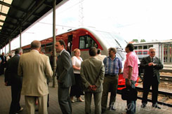 撮影日記11 「列車新時代」 正直、リトアニアは、列車大国という印象ではなかった。国内路線は少ないし、乗車している人もそんなに多くない。観光バスや、自動車はたくさん見るのに…。実際、話を聞くと、リトアニア鉄道の客車は赤字。貨物でなんとか黒字になっているのだとか。しかし、ヴィリニュスからラトビアに向かって出発する日、偶然、駅でイベントに遭遇した。ブラスバンドがホームで演奏し、何やら記者会見のようなものが行われている。「なになに!?」。最初は訳がわからなかったが、新しい列車のお披露目会だった。リトアニアの人にくらべて背のちっこい撮影の辻智彦は、取材陣に埋もれながら必死に撮影。車窓の取材では滅多にない光景なので驚いたが、リトアニアの人々の、鉄道に対する愛情や意気込みをはじめて感じ、嬉しくなった。ヴィリニュスの駅には、かなり凝った鉄道模型がある。その中にひときわカッコイイ列車があった。「あの列車は何ですか?」と聞いたところ、「レール・バルティカですよ」との答え。今回、何に苦心したかって、バルト三国を縦断する列車がないことだった。どうしても、途切れてしまう。鉄道は帝政ロシア時代、ソ連時代に敷設されているので、バルト三国のそれぞれの首都と、サンクト・ペテルブルグやモスクワを結ぶ路線はある。しかし今やっと、バルト三国を縦に結ぶ新しい鉄道が建設されようとしている。レール・バルティカは、なんとベルリンからポーランドを通って、バルト三国のそれぞれの首都、ヴィリニュス、リーガ、タリンを北上し、フィンランドのヘルシンキまでを結ぶ鉄道だ。バルト三国は既にEUに加盟し、ロシアやベラルーシとは一線を画している印象だったが、ここにきて鉄道も新しい時代を迎えている。鉄道は人やモノの動きを変える。西ヨーロッパから北欧まで旅行するのが、スムーズになるだろう。バルト三国も身近になるだろう。経済誌で読んだのだが、CO2問題解決のため、特にヨーロッパでは、新しい路線が徐々に増えているという。今、世界は列車を見直している時代なのだろう。「世界の車窓から」も、そんな時代の移り変わりをうつす鏡になってゆくのだろう。できれば撮影しやすいように、窓のあく列車を開発してほしいが、安全重視の傾向が強くなっているから難しいだろうなあ。走る列車の窓から吹く風は気持ちいいのになあ。