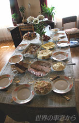 撮影日記12 「ラトビアで食い倒れ」 リトアニアからラトビアに北上し、最初に入ったが、東のラトガレ地方。隣は、すぐロシアです。1772年にロシアに併合されていた地域なので、ロシア人に通じる人情家の人が多かった。我々はラトガレ地方で、酪農一家と養蜂一家を取材しました。これがまた、あったかい人達で。最初に伺ったクロイチュさん一家は親子三代で暮らし、酪農を営んでいる。おじいちゃんと息子さんは牛の世話。そして、乳製品に関しては、ほぼ自給自足。チーズ、ヨーグルト、バター、なんでも。牛の餌の牧草づくり、2種類のチーズづくり、チーズをつかったお菓子づくりまで撮らせていただいた。「素敵!酪農一家」という1時間番組が作れそうなほど撮らせていただいて。うー、2分にまとめるのが、もったいない!家族の人柄が最高。みんな仲良し、にこにこ。おじいちゃんは自分で醸造したビールを、取材中、何度も私達に振る舞うのだった。ほろ酔いで気持ちよくなっちゃって、撮影は辻にまかせ、私は3歳の孫娘、グンタちゃんと手をつないでお散歩したり、写真を撮ってあげたり。言葉は通じないけど、お友達になっちゃった。エテリーさんも、赤ちゃんのヤニス君を抱っこし、すっかり、おばあちゃんの顔に。せっせと働いているのは、撮影部のみ。スンマセン。取材を終えてご馳走をいただく。様々なチーズ、おじいちゃんのビール、白樺の樹液からとれたジュース、チーズケーキ…。なかでも美味しかっのが、バター!軽くて、口溶けがいい。「日本では今、バターが不足しているんです」と伝えたら、なんとお土産に、たくさんのバターを持たせてくれようとする。まだ取材はつづく。ドロドロになってしまうので、泣く泣くお断りした。そのあとは、養蜂家のヴィクトルさんを訪ねた。養蜂って、あまり詳しくなかったんだけど、ミツバチの世界って凄いですね。よく出来ている。女王蜂をせっせとお世話する働き蜂。わたしも女王蜂に生まれたかった。ヴィクトルさんいわく「人間もミツバチに見習うことが、たくさんある」とのこと。自然の成り立ちを理解し、ミツバチの生態を熟知しているヴィクトルさん。まるで哲学者のような風貌でした。ヴィクトルさんの家でもご馳走に。黒パンに蜂蜜をとろり。紅茶にもたっぷり。奥様がつくった蜂蜜ケーキは、濃厚な味わい。蜂蜜酒というのも、はじめて口にした。食って、食って、食いまくった一日だった。沿線にはシアワセが満ちている。