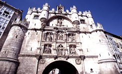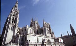 | <第四話> スペインというと、とにかく昔はすごかったという、独特の物々しさがありますね。 ヨーロッパには、色々と「昔はすごかった」ということはあるわけですが、スペインの特徴は何だろう。うう、よく判らない。石か。 あ、石と言えば、都庁に使われている石材はスペインから送られたという噂を聞きましたっけ。そうなんですか?聞いている場合じゃないか。 今週は、再びマドリッドから、今度は北に向かって出発しまして…。 最初に到着したのが、ブルゴスです。 ブルゴスの大聖堂は、なかなか、上記のスペインのすごさを感じさせてくれるものがありました。 まず、とにかくデカいです。いえ、もちろん、もっと大きな大聖堂はいくつかあるのは知っていますけど。 でも、何というか、まあ、数字じゃないデカさが感じられます。 そういえば、コーディネーター様に聞いた興味深いお話がありました。 こうした、大聖堂の門の彫刻などに、時々????と思われるものが混ざっていることがあります。 あれは、何なのかと思ったら、要するに、中世と言えども、誰もがキリスト教を信奉していたわけではないのだそうです。キリスト教が嫌いなのに、無理矢理に彫刻製作に動員された職人などが、ちょっとした仕返しにふざけた顔を彫ったりして、それがチェックをすり抜けたりしたのだということでした。ちょっと、その職人の人に親近感を感じたりして。 この大聖堂には、レコンキスタの英雄として知られるエル・シッドのお墓もあります。 残念ながら、ちょっと工事中でありましたが。 エル・シッド、本名ロドリゴ・ディアス・デ・ビバルは、何でも、近くの村の出身らしいのですが。 バレンシアを1094年に陥落させました。シッドとは、アラブ語のシディ(首長というような意味らしい)から来ているのだそうです。 確か、チャールトン・ヘストン主演で映画になっていますよね…。こどものころ、テレビで見ました。 最後は、死んでしまうのですが、そのまま馬に乗せて城から送り出すと、敵がびっくりして逃げるというエンディングだったと思います。「死せる孔明、生ける仲達を走らす」みたいで、三国志のパクリだったのでしょうか。いや、でも、日本にも弁慶立ち往生の話があるしな。 英雄物語の定番のひとつなのだろうか。 案内をしてくれた、大聖堂の神父さんによれば「システィーナ礼拝堂より上」な礼拝堂もあるのだというようなことでしたが。 うーん、この発言は…どうなんでしょかねえ。 まあ、上下を争うものでもないように思いますけど。 ああ、全然関係ないけど、スペイン語も謎なんですけど、私。 よく、「日本人にも発音が簡単」などと云われますけどねえ。 うーん、謎というのは、例えばllaなんかがそうなんですけど。 これ、「ジャ」と読む人がいるでしょ? いるんですよ。 セビージャ、とか、カスティージャとか、マハラージャ、はスペイン語じゃないや、えーっと、まあ、そういうことです。セビーリャとか、カスティーリャ、が正式なのだと思うのですけど。単なる地方訛りということなのでしょうか。 あ、で、ブルゴスです。そうそう。 そういえば、ブルゴスは、ちょうどお祭りの最中ということで、私たちも 期待していたのですが、少なくともこの晩は、ステージでバンド演奏があって、後は飲んで歌って踊って、という、それだけのことでありました。それって、スペインの普通の週末と同じじゃないの? まあ、夜の11時ころに花火がありましたけど。 日本なら苦情が殺到しそうな時間帯ではありますが、撮影隊は、既に疲れてホテルで寝ておりました。