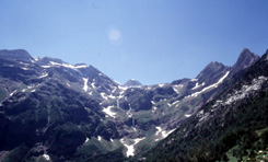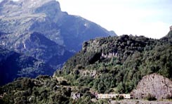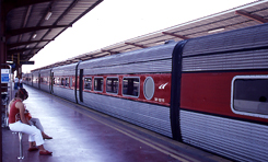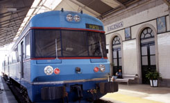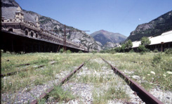 | <第三話> さて、スペインも三週目に突入しました。時差ボケもすっかり消えて体調も上々です。 体調がよくなると、食欲も急上昇してきます。ロケの間は、大体、早朝から深夜まで動いていることが多いので、よく食べます。スペインのような国は、大変に危険でありまして、美味しいものが、結構ありますから…。結果、帰国するころには、何だか太っていたりして、いくら「大変なロケでした」と報告しても、プロデューサー様からは「ふーん、そうですか」と、疑惑のまなざしでギロリと見られてしまうのです。 うーん、では、スペインであんまり美味しくないものの話をしましょうか。 これは、なかなか難しいのですが、私にとっては、トルティーヤのサンドイッチですね。野原の真中で走ってくる列車を撮影しようと待ち構えている時に食べたのですが…。 トルティーヤというのは、スペインの厚い卵焼きで、ジャガイモが入っています。 これだけでも、かなり口の中がモサモサするのですが、でも単体でなら美味しいんですよ。 でも、それをパンの間に挟むっていったい…? 口を思いっきり大きく開かないと、かじることができないばかりか、そのまま喉に詰まりそうな容積であります。それに、そもそもトルティーヤにはあんまり味がないから、サンドイッチの「具」として、非常に不適切だと感じるのですが。 どうして、これをサンドイッチにしようと思ったのだろうか。 …っていうか、それじゃないのを買えばいいんですけどね、単に。 となりには、ハムとチーズとか、そういう定番のサンドイッチがあるわけですから。 さて。 今回、乗車した列車は、ピレネー山脈のカンフラン駅が終点です。 私は、子供のころから、何だか岩山と森と川というセットが好きでありまして、氷河が削った谷なんぞあろうものなら、つい嬉しくなって見とれてしまう性癖があるものですから、このルートは大変に気に入りました。 もっとも、日差しはこれまでにも増して強烈でしたが。 カンフランは、冬には、スキー・リゾートとして賑わいます。 そういえば、かつては、この鉄道は、カンフランから、さらに北に国境を越えてフランスへと続いていたわけですが、今はカンフランが終点になっています。 で、そもそも、この路線が問題になったのには、このスキー・リゾートが影響していたらしいです。 要するにスペインのスキー場の方が安かったから、フランスのスキーヤーたちがスペイン側に来てしまって、フランス側のスキー場は商売にならない。 そこで、フランス側では「この憎っくき鉄道さえなければ」という空気になっていたとか・・・。 そこに幸い、鉄橋が落ちてしまったので、「お金がない」を理由に、この路線は幻となってしまったのでした。 でも、EUになったこともあって、再び建設するという計画もあるらしいです。 数年後には、「世界の車窓から」で、そんな旅が放送できたらいいですね。 それにしても、サラゴサからカンフランの列車は、私たちが乗った列車も、戻っていく所を撮影した列車も、翌朝撮影した列車も、ちょうど1時間、それって、要するにそもそも時刻表に無理があるということなのではないかと思うのですけど。 撮影の予定が何かと振り回されています。