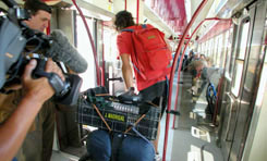 | <第五話> いやー、やっぱり海はいいなあ。真っ青な海、砕け散る波、照りつける太陽。 海の、この、独特な開放感というのは、何なんでしょうねえ。それにしても、山と海はお天気がよくて何よりでした。撮影は、とにかく天気が命ですから。これで、海が灰色、山は見えない、世の中真っ暗、人々険しい表情、というのでは、がっかりです。 まあ、「世界の車窓から」は、番組自体が日記みたいなものですから、 それならそれで「ここからは、美しい山の景色が見られるとのことですが、今日はあいにくの曇り空で見えませんでした」ということで列車は走り過ぎていくわけですけど、そういう時のスタッフ一同のじくじくたる思いたるや。そして、編集する時に、また、そのじくじくを繰り返し味わうというわけです。 いえ、もちろん、灰色の海も、感動的な場合はありますよ。でも、スペインじゃなくてもいいですよね、それは。 スペインで「海」と言えば、まずはコスタ・デル・ソルが思い浮かぶのでしょうが、他にもコスタ・ブランカとか、コスタ・ブラバとか、このロケの後半で走る予定のコスタ・ベルデなど様々な海岸があります。 でも、まあ、有名どころは、基本的に地中海に面しているところだったりするのですが、スペインは半島ですから、実はかなりの部分が海に囲まれているのです。 サンタンデールは、スペインの北岸。カンタブリア海に面した町です。 特に特徴のない町ですが、それは、大火でほとんどの建物が焼失してしまったからかもしれません。 で、じゃあ、サンタンデールの特徴は何なんだ、と訊かれると、実は少し困ってしまいます。 普通のビーチに、普通に家族連れが、遊びに来ているという感じです。 でも、王室が昔から夏の保養地として利用していて、その宮殿もありますから、日本で言えば葉山になるのでしょうかねえ。 あと、マドリッドを離れて、地方に来ると、ひとつ安心するのが、 「首絞め強盗」がいないことです。いえ、そりゃあ、強盗さんも移動するかもしれないですけど、一応、マドリッドとバルセロナが二大危険地域と云われておりますようで…。 マドリッド市内を撮影する時なんか、コーディネーターさんはピリピリし通しでした。 観光客が行く場所、すなわちスペイン広場や太陽広場がもっとも危険だということで、「ここにいる人は全員が泥棒だと思ってください!!!」と 厳重に注意をされました。 いやー、でも、全員が泥棒で一度に襲ってきたら、どうしようもないんだけどなあ。 それにしても、北に来ると、本当にスペインっぽくないです。 緑に覆われた山がうねうねと続き、清流が流れ、川の両岸には木が生い茂っています。 牛が草を食み、何だかのどかな風景です。建物も、何というか、普通っぽいんですよ。 普通って何だよ、というツッコミは、まあ、あるでしょうけど。 もちろん、だからこそ、人気があるということはあるんですよ。 私たちも、既にスペインに何日もいますから、この瑞々しい風景は、新鮮で気持ちいいです。 うーん、他には…そうですね、素通りしたパレンシアの話でも書いてみますか。 パレンシア。 バレンシアではありませんよ。 ちなみに、今回は、後日、バレンサという所にも行く予定がありますが…。 こういう言葉の語感って、どうなんだろ。日本語だったら、ある種の勘というのか、感覚というのか、あると思うのですけど、外国語だと皆目見当がつきませぬ由。 と、すぐに脱線しますが、パレンシアです。 パレンシアは、歴史もあるし、かなり大きな町なのです。周りは穀倉地帯で、その集積中心的な役割もある他、様々な産業があるようです。 が、あんまりパッとした見所がないのです。 何故かと思ったのですが、何でもスペインでは1520年ころに、国王に対する都市の反乱があったのだそうで。 その時の、盟主的な役割をパレンシアは果たしてしまったらしいです。 だから、その後様々な意地悪をされてしまって、何だか繁栄できなかったみたいなのでした。 他に、印象的だったのは、とにかく自転車が多いことです。 サラゴサでも、自転車巡礼親子に出会ったけど。 スペイン人って、ほら、あんまりフィットネスに熱心という印象じゃなかったので、私はかなり意外な印象を受けました。 こういう、山や湖などのある地方を行く列車は、自転車乗りの人たちが ぞろぞろと乗り込んでくるのですよ。 ほとんどの、自転車ライダーは、衣装から何から、バッチシという装備です。 もちろん、隣の町まで商いに行きます、というような自転車乗りのおじさんなんかもいますけどね。 自転車乗りの人たちも、普通にホームで待ち、ステップのある乗車口から乗り込むので、これがなかなか大変です。 んでもって、多分、野山で何時間か自転車した後は、また列車で帰るんでしょうねえ。 それはもっと大変なような気もするけど。 まあ、でも、自分たちの心配をしている場合なのでしょう、私たちとして