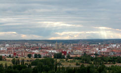 | <第一話> というわけで、スペインにやって参りました! いやー、皆さんもお聞きになっていると思いますが、スペイン、暑いです。そして、太陽がめちゃめちゃ眩しいです。その上、町が石でできているものだから、その照り返しがまるでレフ板のようであります。もっとも、そのお陰で目の悪い私でも、ずーっと遠くまでクッキリと見渡すことができたりします。 今回のルートは、スペインでは比較的注目されることの少ない「北」がテーマです。 スペイン北部。もちろん、私も初めてです。アラゴン、カンタブリア、アストゥリアス、ガリシア等、地名も「ああ、聞いたことあるような・・・」という、まあ、何ともモノを知らない人間でお恥ずかしい限りでもありますが、それだけに新鮮な発見や驚きがあるのではないかと、ひそかに期待も膨らむのでありました。 でも、さすがはスペインと言うべきか、北にも見所はびっくりするくらいたくさんあります。スペインお約束のムデハル様式の建築もあれば、壮麗な大聖堂もありますし、ユネスコ世界遺産ゥ登録も、ぞろぞろといった感じです。それにしても、昔は(失礼!)本当にすごかったんですねえ。でも、そんな歴史をもしみじみと感じさせてくれる旅になると思いますよ。 スペイン北部は、また、豊かな水に恵まれているそうで、スペインの一般的なイメージとはちょっと違った、急峻な山脈や、緑があふれる景観が広がっているのだそうです。民族や文化も多彩だということで、うーん、どうもイメージできなくて困るのですが…。 とりあえず、最初は近郊列車に乗ってマドリッドからアルカラ・デ・エナーレスへ。続いて、タルゴ特急でサラゴサに向かいます。スペイン、列車はすごく近代的でちょっと驚きました(これまた失礼!)。タルゴ特急なんて、最初は1950年に登場したということなのですが、何だかとても先進的な技術が盛り込まれているようです。 そんなわけで、スペインはなかなか深いですよ。