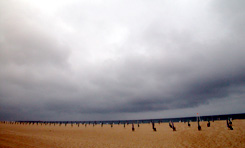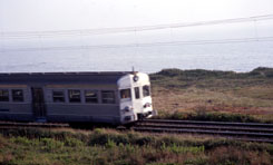 というわけで、スペイン・ポルトガル、11週に及ぶ列車の旅もいよいよ終わりの時がやってきました。くすん。くすん。コインブラから、海岸線を南へと下り、首都リスボンへ…。さすがにポルトガルに来てからは、ポルトの濃霧とか、真っ白なブラガとか、ちょこちょことお天気に翳りが見えてきていたのですが、海岸の町、フィゲイラ・ダ・フォスに行く日は、とうとう雨。で、その海岸は、まったく見事なまでの寂しさでありました。まだ7月だけど、10月あたりの日本の海に行った気分?何だか、ポルトガルでは、海に行くとなると、天気がよくないということが続いているような…。これも日頃の行いか?