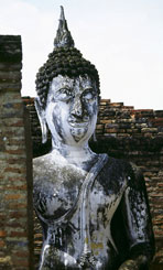 タイ撮影日誌4 タイ北部は、ランナータイ王国だったのですって!いえ、私には新鮮だったのですけど。もしかして常識ですか?何でも、スコータイに王国が誕生したのと、ほぼ同じ時期にランナータイは建国され、チェンマイは1296年に首都に定められて以来、ずーっと北部の中心都市として栄えてきたということです。「ランナー」とは、「100万の水田」というような意味らしく、要するに昔から米がたくさん採れたのでしょうね。「加賀百万石」と似てるかな。似てないか。そういえば、スコータイは「幸福の夜明け」という意味の古代インド語だということですし。タイには、「名は実態(希望?)を表す」系のネーミングが、実は多いのかもしれませんね。いろいろと調べると楽しいかも。 興味深いのは、そんなわけで、北部タイというのは、アユタヤ系であるところの現タイ国とは、元々は別な国なわけじゃないですか!だから、昔は結構戦争もしていたし。ということは、別の文化?別の言語?別の民族?という疑問も湧いてくるわけですが、どうなんでしょうか…。いつか調べてみたいと思います。夏休みの課題にでも…。 さて。そのランナータイ王国も、上座仏教の一大拠点だったらしく、1477年には、「第8回世界仏教会議」という、国際会議が開かれたそうです。何か、すごいじゃないですか。ちょっと、わくわくしますね。いったい、誰が出席していたのかしら。それから、「第8回」というところも、注目じゃないですか?第1-7回についても、知りたいなあ。しかし、16世紀に入ると、お決まりの後継者争いとか、いろいろあって、国力は衰退。隣のビルマがちょっかいを出してくる、ということになります。以上、中途半端な歴史的お勉強コーナーでした。他にも、今回学んだこと。 ○タイの人たちは、元々北の方(今の中国のどこか)からきたらしい。 ○タイの文字は、スリランカの文字を発展させたものらしい。 それにしても遠かったです。ピサヌロークから10時間ですからねー。ピサヌロークまで、既に10時間近くかかっていたような気がするし。でも、面白かったです。雨あり、洪水あり、遺跡あり、サルあり、の盛りだくさん。どうして、こんなに時間がかかるかというと、もちろん、理由のひとつは単線だからです。逆方向の列車と交差する都合上、駅で30分待ちというようなことが、度々あります。でも、各駅停車なのだけど、後ろから抜かれたという記憶はあんまりないのは何故だろう。