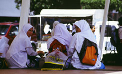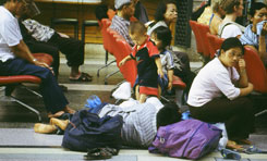マレーシア撮影日誌1 マレーシアにとうとう到達!イエーイ! ハジャイから、バタワース行の国際列車に乗ると、あっという間に国境です。今回の旅で初めて乗車したエアコン列車。涼しいのも快適だけど、それよりも「静けさ」ですね!普通の声で会話ができるのがすごい。ほら、列車の中で出会った人たちと、簡単に会話したりするんですけど、これがタイの三等車だったら、お互いに怒鳴り合わなければならないのです。国境駅には、およそ2時間の停車でした。入国手続きを行なって、残りの時間はカフェテリアで朝食。ふう。そして、国境から約1時間乗車して、最初の都会、アロースターで下車。とにかく、国境を越えたからには、マレーシアを早く見聞きしたいという気分です。 アロースター、まず驚いたのは、キレイです!道路は広く、車は整然。道の両側には、広い芝生や歩道が整備されています。タイの大混雑な雰囲気とは大違いです。勝手に想像するに、多分マレーシアの方が人口が少ないのだろう、と。そして、規律がもっと厳格なのではないか、と。或いは、アロースターが特殊なのか。タイとマレーシア、どっちが好きかは、まあ、趣味の分れるところでありましょう。 アロースターから、続いてはバタワースに向かって、夕方の列車に乗車します。バンコク〜バタワース間は、一日2本しか列車がなく、そのせいか、結構混んでいます。特にエコノミークラス(三等車の別名)は満席。しかし、ここでトラブルが発生。車内にはビデオ上映の設備があるのですが、係の人が各車両のテレビモニターの電源を入れたところで、いきなり真っ暗。何と停電です。電源車に問題があるようで、当然、冷房も切れてしまいました。こうなると、逆に窓が開かない車両は辛い。息苦しいです。暗闇のどこかで赤ん坊が泣き出しました。何だか、列車内、いやな雰囲気。うわ、これはまいったな。あーあ。真っ暗な車内では、こちらもお手上げです。撮影続行不可能。顔がお互い見えないと、会話も弾まず、何だか沈黙の列車になってしまいました。 暗闇を走り続けて、バタワースに到着。下車してペナン島へと脚を伸ばします。マレーシア西海岸は、番組的にはかなり辛い。バタワースからクアラルンプールまでは、一日1本しか列車がなくて、これがまた夜の9時半の発車ときています。数年前までは、一日4本走っていたということですが。 あー、もう、これでは「車窓」が真っ暗になってしまいます。