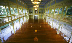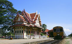 タイ撮影日誌6 とうとう今回の旅のメインイベント、南本線に乗車です。今さらですが、タイの主な鉄道路線は、北、南、西、東、東北。そして、東北から東に分岐した路線、と、かなり単純にバンコクから放射状に各方向に伸びているというレイアウトです。東北線はラオス、東はカンボジア、西はミャンマーとの国境に達しています。かつては、国境に達しているだけではなく、ミャンマーにもカンボジアにも線路が続いていたのですが、今は、途切れています。いつか再びつながって、鉄道大旅行ができるといいな。 というわけで、南本線。マレー半島を縦断して、先端のシンガポールまで…。とりあえずの目標は、ホアヒン。実は、私は聞いたことのない地名だったのですけど、王室の海辺のリゾート地なのです。その昔の王室ライフの雰囲気をちょっと感じるには、マルカタイヤワン宮殿という場所があります。この宮殿を作ったラーマ6世は、どうも体調が悪かったみたいですね。医者に「海辺の気候のいい所に行け」と薦められ、今よりもっと北の海岸に離宮を建てました。が、居心地が悪かったそうです。そこで、ホアヒン方面に着目。「もっと快適で海の風が吹き抜けるような宮殿にしてやるー!」と、自分でいろいろとアイデアを出して作った建物なのだそうです。しかし、そうした甲斐もなく、ラーマ6世は2年後に亡くなってしまいました。1925年のことです。バンコク〜ホアヒン間の鉄道の開通は1911年で、それがホアヒンの発展に大きく寄与しました。1922〜3年には、豪華ホテルも建設されています。 まあ、それはともかく。タイで海辺と云えば、思いつくのはパタヤ、プーケット、サムイ島で、ホアヒン…?と思いつつ、バンコクからホアヒン行で4時間20分。例によって各駅停車です。実は、ホアヒンのひとつ手前にチャアムというビーチがあって、バンコクから乗った人の多くは、そっちで降りてしまいました。やっぱり、ホアヒンは高いらしいんですよ。王室ブランドがついているわけだし、やや高級なリゾートとして売ろうというマーケティングのようです。だから庶民はチャアム。 ホアヒンの駅には、王室専用の待合室というのも設けられています。当然、ここでの疑問は「今どき、しかし、列車で王族はここに来るのか?」ということだったりしますが。王室専用列車というのもあるのかしら。現在も王族がホアヒンに逗留している時は、軍を始め、いろいろと警備も神経質になるようです。
