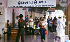 タイロケ日誌8 ディープ・サウス。北と南の違いって、一番大きいのは何なのだろう。 これが案外難しいです。まあ、このグローバルな21世紀に、そういうものが明白に見られると思うことが甘い考えなのでしょうが。南部って、ガイドブックを見ても、ページ数も少ないし。きっと色々な魅力が発見されるのを今や遅しと待っているのだろう、と、例によって楽観的な撮影隊です。 色々と資料を集めて、期待満々で行ってみると「?」というケースもありますからねぇ。「マングローブの密林」の予定が「エビの養殖場」に変わっていたり。他にも“ある種名所なんだけどぉ…”というケースもあります。「王様と私」のモデルになった王様が建てた天文台、と思われるものも数秒だけ見えました。列車の窓から「へえー」と見ている間に、どんどん行ってしまいます。 タイ南部の歴史というのも、なかなか面白そうですよ。この長く突き出した半島は、交易の中心として栄えたようで。スリヴィジャヤ帝国、なんていう、素敵な名前が出てきます。7世紀から13世紀にかけて、マレー半島からインドネシアの一部を治めていたらしい。7世紀より前には、タンブラリンガという国があったそうで、ナコン・シータマラートはそこの首都、リゴールだったと考えられているというのです。何か、今とは全然違う港や町並や人々の光景というのが、うう、見たいぞ。 そのナコン・シータマラートですが、この町では、久しぶりにお寺訪問です。南本線に乗ってから、あんまりお寺を見た覚えがないですもん。高さ77メートルの仏塔が一際目を引きます。ここは南部を代表する都市なんですけど、南本線から少し外れています。だから、ナコン・シータマラート行の列車って少ないんですよ。私たちは、バンコクからの寝台急行に、ランスアンから乗車です。この急行は、これまで乗った列車とは、かなり違っていて、例えば食堂車があります。車両も、お馴染みの三等、二等、二等寝台、エアコン付二等寝台、そして一等寝台(個室)という構成です。一等寝台には誰も乗っていませんでした。 南本線に戻って、さらに南下。南部最大の都市が、ハジャイです。ハジャイは、何というか、久しぶりに都会っぽい都会です。マレーシアから、国境を越えて、遊びに来る人が多いということです。そうそう。ハジャイ駅には、軍隊がパトロールしています。自動小銃を持って。いろいろと問題を抱えている南部だ、ということに気付かされます。