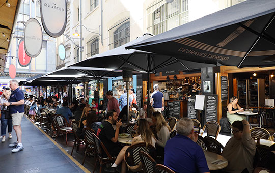 - カフェがひしめくメルボルンの細い路地