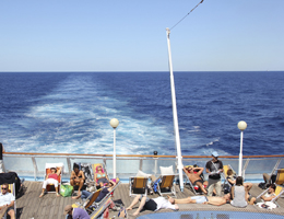 - フェリーでくつろぐバカンス客