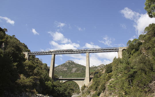 その日最初に狙っていたのはコルテとアジャクシオの間の山間部にあるポイント。橋の上を通る列車を近距離から撮影したかったのだが、現場に到着してみると個人の家の敷地に入らないと撮れそうにない。「あー、どうしよう!」と困っていたら、外が騒々しいのに気づいたその家のマダムが玄関から出てきた。コルシカ出身の我らがドライバーニコラを先頭に立たせて交渉してもらい敷地に入れてもらう撮影隊。