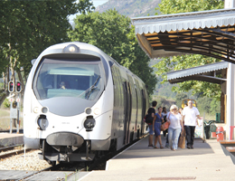 コルシカ鉄道の列車にはなんとも言えない愛嬌がある。白色ベースで丸っこいデザインの車体が常に2両編成で走っていて、そのずんぐりむっくりの風体がどこか芋虫を連想させるし、ディーゼル車なのでボボボボボというちょっとこもった排気音を響かせて走るのも可愛らしい。