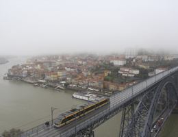 - 私達がポルトガルに降り立った頃は、まだ春の長雨が降り続いていた。外の風景は、どこか物憂げだったが、車内は対照的に賑やかな空気で溢れていた。雨によって列車に乗らざるを得なくなった人たち同士が出会い、会話が弾んでいる。カメラを片手に話しかけると、彼らのおおらかさに包まれて、地元の仲間に入れてもらえた気がしてワクワクした。夕刻、雨粒はだんだん小さくなり、霧がポルトの街を更に幻想的な街へと変えた。