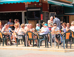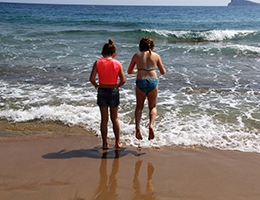 目指すベニドルムもコスタ・ブランカ有数のリゾート都市。ビーチでの撮影を予定しているが、こちらも閑散としていたらどうしよう…という不安を抱えたまま、ベニドルムに到着。心配していたビーチは予想以上に賑わっていた。北ヨーロッパ、特にイギリスからバカンスに訪れる人が多いらしく、リゾート地の太陽を求める気持ちが強いのかもしれない。4月でも道行く人の半分くらいは水着姿。海沿いのテラスにずらりと並ぶ上半身裸のおじさんたちは、なんだか日本の銭湯の常連さんみたいで、海辺のエキスパート感がにじみ出ていた。