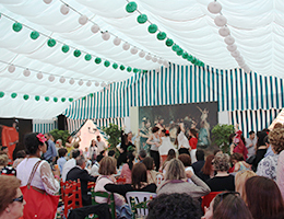 広大な祭りの会場を行き交う、馬車や馬に乗った人たちが、150年前の雰囲気を醸し出す。さらに独特の雰囲気を見せるのは、カセータと呼ばれる仮設の小屋。カラフルな装飾が施された小屋には番号がついていて、それぞれ友人や親戚、企業などのグループごとに過ごす会員制のスペースになっている。基本的には招待された人しか入れないが、誰でも入ることができるカセータもいくつか用意されている。建ち並ぶかセータの数は1000近くあり、番号を頼りに目的のカセータを目指すのだが、たどり着くまで想像以上に時間がかかった。中に入ると、テーブルと椅子が並んでいて、その奥に演奏や踊りを披露する舞台がある。1週間の祭りの期間中、飲んで踊って陽気に過ごす。それが、この祭りの醍醐味なのだ。私たちが取材したのは午後の時間帯。どのカセータも祭りを楽しむ人たちの熱気に包まれていたが、夜になると、もっと沢山の人でごった返し、朝までセビリャーナスという伝統の踊りを踊り続けるらしい。夜の雰囲気も見てみたかったが、夕方から他の場所に移動して撮影をしなければならず、見ることはできなかった。