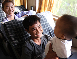 - ベトナム人はフレンドリーな性格らしい。例えば、列車内で子どもをあやしている人がいて、当然その子の親か親戚だろうと思うと、そうでもない。たまたま近くの座席になっただけの初対面の人だったりする。他にも、大笑いしながら会話していたり、食べ物を分け合っていたりと、偶然同じ列車に乗り合わせたというだけなのに、打ち解けている乗客たちをよく見かける。列車のスタッフまでもが、小さな子が泣き止まなくて困っているお父さんに、ソフトシート車両の空いている席を提供するなど、ほのぼのとした人情が残っていて嬉しくなる。