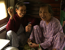 - 似たことを、ハードシートで眠る乗客たちにも感じる。長時間乗るけど、寝台のお金は払えないという乗客は、対面式の座席と床を分け合って横になる。でも座っている人にとっては足場が邪魔とかいろいろとあるだろうし、誰がイスで誰が床かという損得もあると思うのだが、あまり「迷惑」「遠慮」「権利」「恐縮」などとは無縁な、ザクっとした「お互い様」感覚なのではないかしらん。生きていくには、そういうことも必要かも。