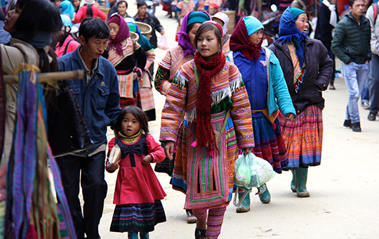 - でも、少数民族の暮らしぶりは大変そう。旅行者は車やバイクで移動するのだが、モン族たちの多くは遠い道のりを徒歩で行き来しているようだ。山道の脇で親子が休憩している姿など、微笑ましく、痛々しい。観光地では、土産物を売ろうと外国人観光客にまとわりつく光景も見かけるが(これはベトナムの他の観光地でも経験したけど)、その土産物は自分たちが作っているものとは限らず、中国の工場で大量生産されているものもあるという。元締めに体よく使われてしまっているのか。中国もベトナムも目覚ましい経済発展を続けているけど、山奥で自給自足のような生活を営む人々に、その恩恵は少ないのだろう。伝統的な生活を捨てて、街に出て働くしかなくなっていくとしたら残念なことだ。