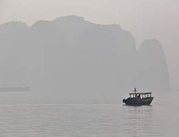 - ベトナムの旅、最後はハイフォンの街を経由して、ハロン湾。生憎の小雨と霧だが、これも雰囲気があって悪くない。白い世界の中から、石灰岩の断崖が浮び上がり、重なり合って、消えていく。水面は、すべるように滑らかでとても海だとは思えない。南のホーチミンから、首都ハノイを経て北のラオカイまで。鉄道の旅は、ベトナムの人々の自信や希望、国土の持つ様々な魅力や自然の恵み、この国の歴史や文化について、多くのことを教えてくれた。撮影を支えてくれたスタッフに感謝。名残惜しい。Xin chào!