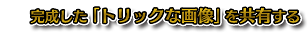完成した画像は、スマートフォン端末内のアプリを利用して、共有することができます。あなただけの「トリックな画像」を、SNSやメールでみんなに自慢!