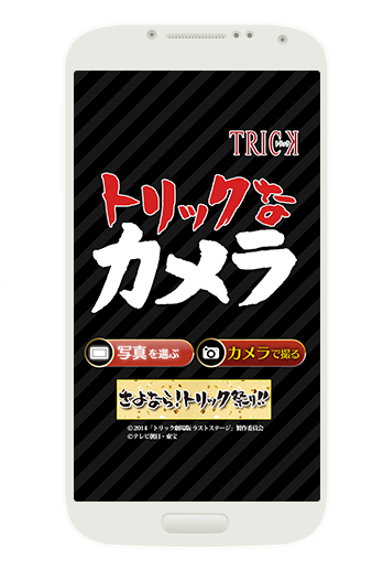 トリック風のフレームとスタンプで、トリックっぽい画像が合成できるカメラフレームアプリです。