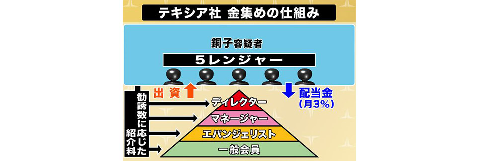 テキシア社は1口100万円から出資すれば毎月3%の配当金を支払うなどと出資者を