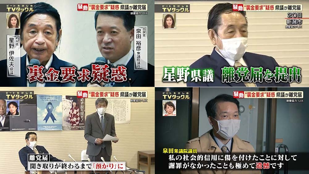 自民党の泉田裕彦衆議院議員が、星野伊佐夫新潟県議から裏金を要求されたと 告発していた問題で、星野県議が自民党新潟県連に離党届を提出。一連の問題をめぐって責任を取る形で離党を決めたという。裏金の要求疑惑については「まったくそんな会話した覚えもないし事実無根…」と、改めて否定。それに対し泉田衆議院議員は「裏金について否定したというのは意味不明です。私の社会的信用に傷を付けたことに対して、謝罪がなかったことも極めて遺憾です」とコメント。平行線をたどるこの2人の騒動、いったいいつまで続くのか?