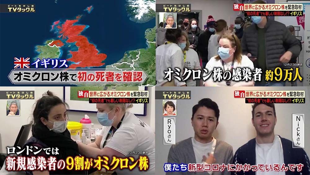 イギリスの現状を聞いたのはロンドン在住、会員制ホテルで働くリョーさんとルームメイトのニックさん。実は2人とも現在、新型コロナウイルスの感染しており自宅隔離中。「僕たちはおそらくオミクロン株にかかっていて、でも無症状、熱もなく味覚も嗅覚もある」という。