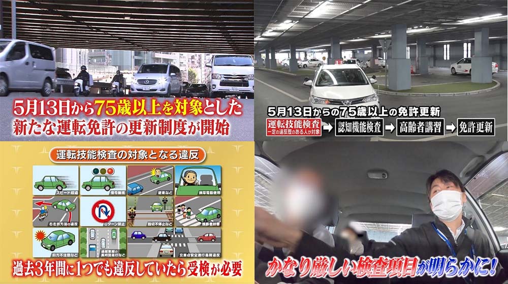 5月13日から75歳以上の高齢ドライバーを対象とした新たな運転免許の更新制度が始まる。一定の違反歴がある人は認知機能検査の前に運転技能検査の受検が義務化される。運転技能検査が必要となる違反は、スピード違反、信号無視、 逆走など11種類。これらの違反を免許更新通知が届いた時点から過去3年間に1つでも違反をしていた場合は受検の対象となるという。