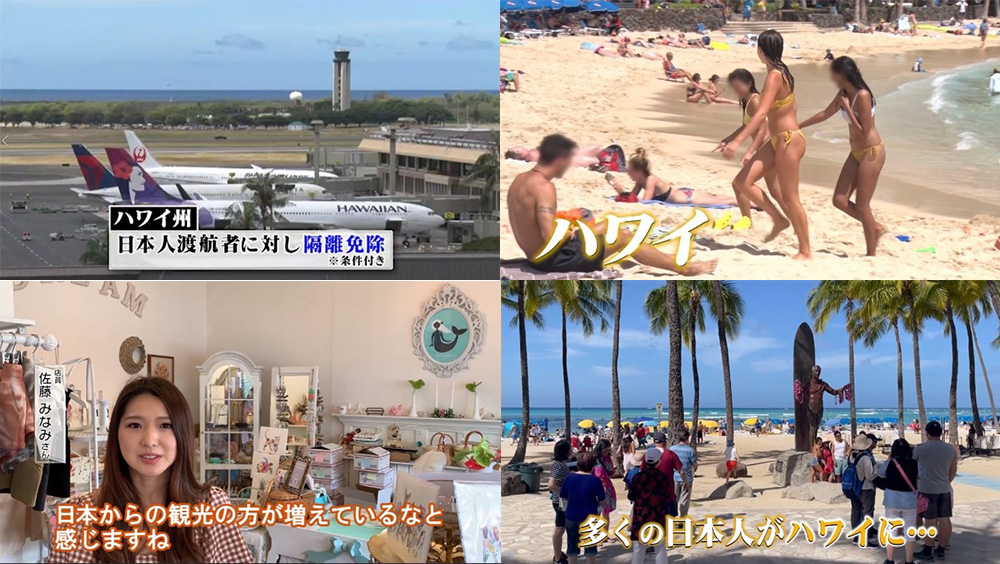 ハワイ・ワイキキビーチは新型コロナ流行以前のような賑わいで多くの人が海水浴を楽しんでいた。現在、ほとんどはアメリカ本土からの観光客。