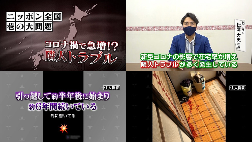 新型コロナの影響で、在宅率が増え、隣人トラブルが多く発生しているという。
