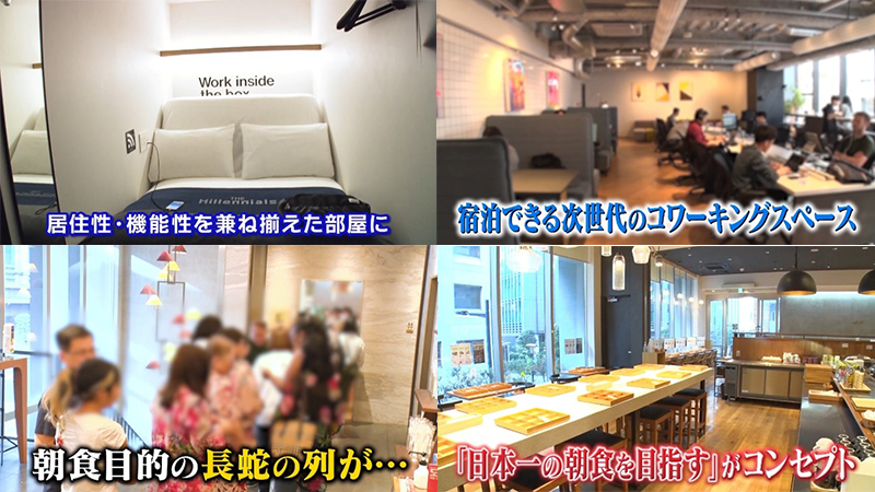 カプセルホテルも時代とともに変化。渋谷のホテルはインターネットを利用してチェックイン手続きや、アイテムの貸し出しなど、全てモバイルで行える。24時間自由に利用できるラウンジや、コワーキングスペースもあるという。