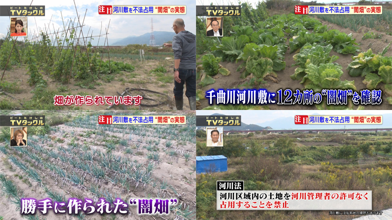 国土交通省が管理する国有地で許可なく占用してはならないと河川法で定められているが、千曲川に12カ所の“闇畑”が確認されている