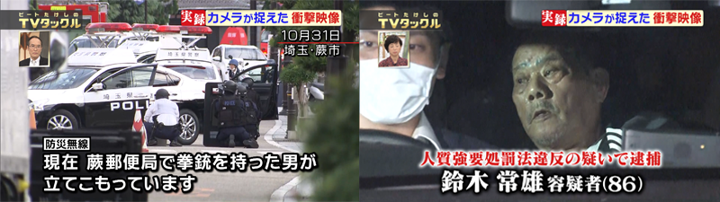 埼玉・蕨市の郵便局で86歳の男が拳銃を片手に2人の女性職員を人質にとって8時間に渡り立てこもり。