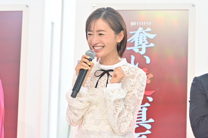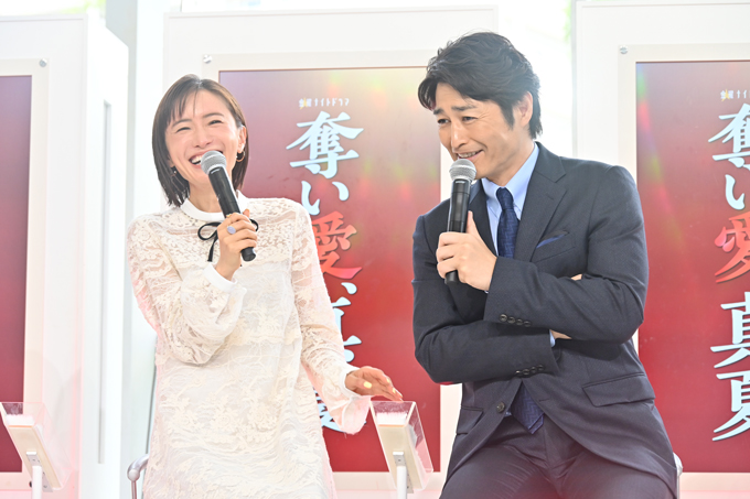 また、このシーン写真には、『奪い愛』と言えばこの人――水野美紀の姿も! 『奪い愛、冬』(2017年)や、松本と共演した『奪い愛、夏』(2019年)で度肝を抜く怪演を披露した水野が、今回は真夏の亡き母・海野三子(うみの・みつこ)役で出演します。水野との再共演に、松本も感激。「第一声から“これが奪い愛だ!”っていう世界観を感じさせてくれたんです」と、興奮冷めやらぬ様子でした。