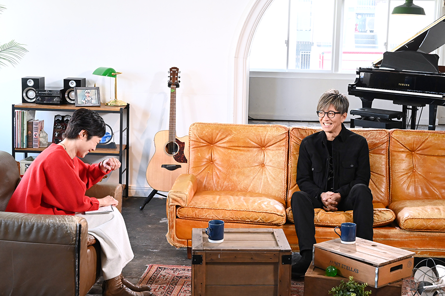 1対談の幕開けは都内某所、レインボーブリッジを望むビルの屋上。11月13日(木)に53歳の誕生日を迎える木村に、有働が花束を贈って祝福するところからスタートします。