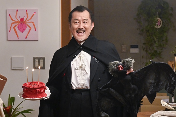 たどり着いたこころの実家。豪華な門が開き、お城のような屋敷に踏み入れていく。蝋燭の灯りが揺れる怪しげなリビング、ビンテージ物の棺桶が飾られ、キッチンにはブラッドサーバーが置かれている。彼女を出迎える、黒いマント姿の父・闇原海造(吉田鋼太郎)、そしてワイングラスで血を嗜む母・闇原伊織(麻生久美子)。そう、彼女の正体は、吸血鬼だ――。