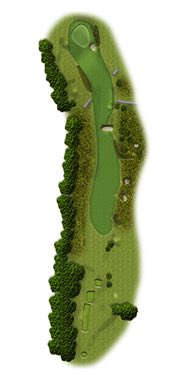 2オンを狙えるPar5 2オンの可能性があるロングホール。 アプローチをショートすると右手前のバンカー方向に向かっていく。 グリーンへはキャリーで落とすか、転がす場合はグリーン左端位を狙う。