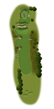 打ち上げの難しいフィニッシングホール ティーショットは安全に一つ目のフェアウェーバンカー手前に置くか、あるいは思い切り行くか、選択を迫られる。 グリーンは奥に細長く、またうねっており、ピンハイに止められるかがポイント。