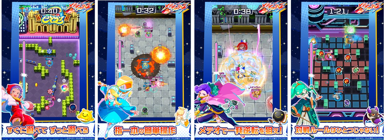 2024年9月18日にリリースのオリジナルスマートフォンアプリゲーム「メテオアリーナ」は、世界累計利用者6100万人超の大人気スマートフォンアプリゲーム『モンスターストライク』や『キングダム 乱 -天下統一への道-』などスマートフォンゲームの開発運営において豊富な実績を持つ株式会社でらゲーと、テレビ朝日がタッグを組んで共同で企画・開発。