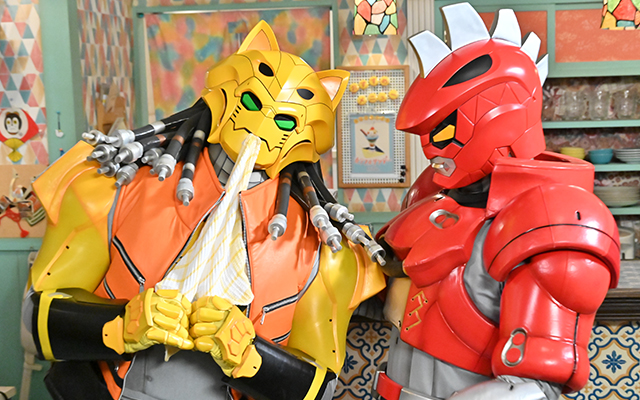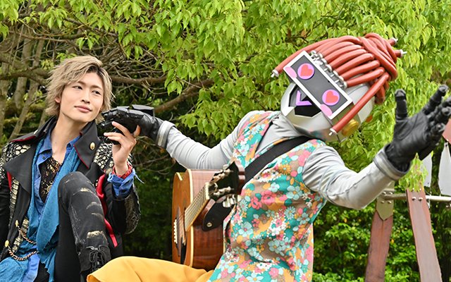 介人(駒木根葵汰)は、中学の時の同級生・花恋(福田愛依)と再会。ジュラン(声:浅沼晋太郎)は、介人と花恋の仲を勘ぐるが、ブルーン(声:佐藤拓也)は恋にはまだ疎いよう。