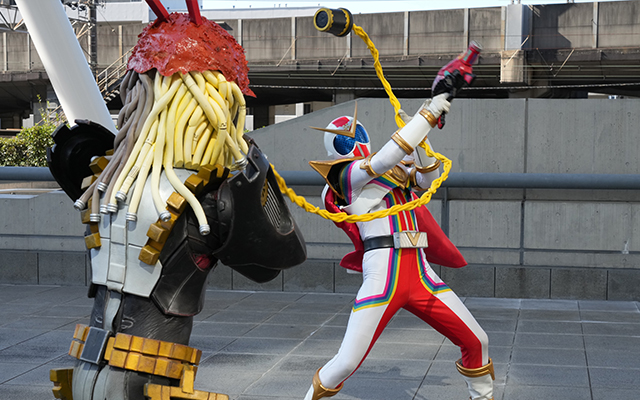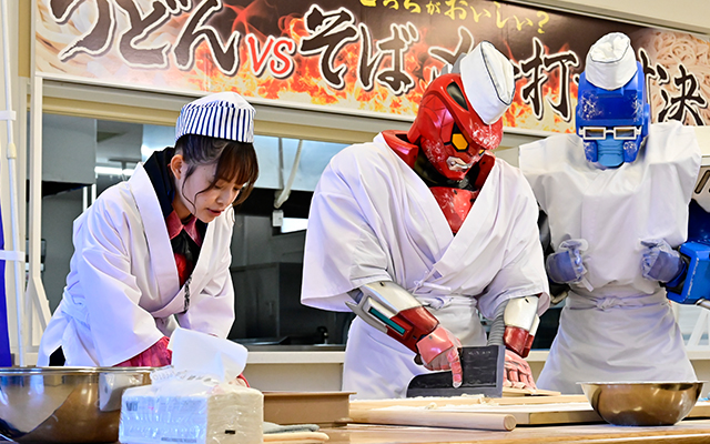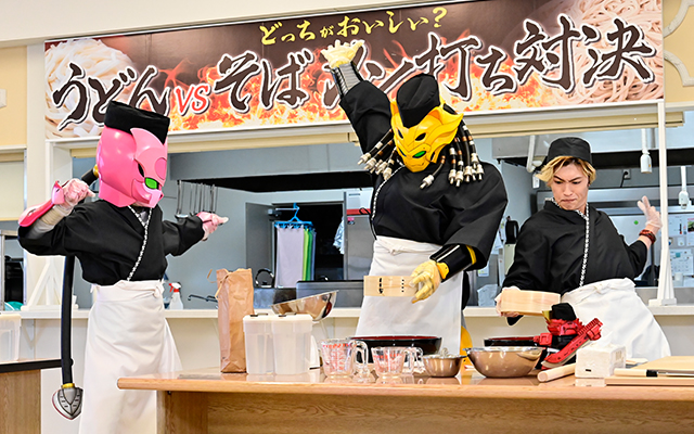 そんな中、メンワルドが出現。駆けつけようとする功を、介人は必死で止める。ゾックス(増子敦貴)とジュラン(声:浅沼晋太郎)たちが応戦するが、メンワルドの攻撃を受けると2つに分裂。街の人々も巻き込み、ゾックスやガオーンたち“そば派”と、フリントやジュランたち“うどん派”にわかれて激しい派閥争いが始まってしまう。両派は介人と功を引き入れようとするが、介人は「おいしい方につく」と宣言。両派を一旦休戦させ、おいしいそばとうどんを作ることに熱中させる。その間に、介人は功に話したかったことを打ち明ける。介人は、功を取り戻したことでステイシー(世古口凌)のたった一人の仲間を取り上げてしまったことを気にしていたのだ。功は、ステイシーのことを一人にしたくないなら介人がなんとかしろと励ます。